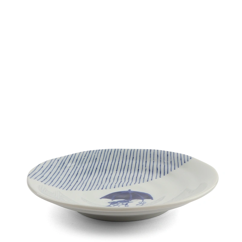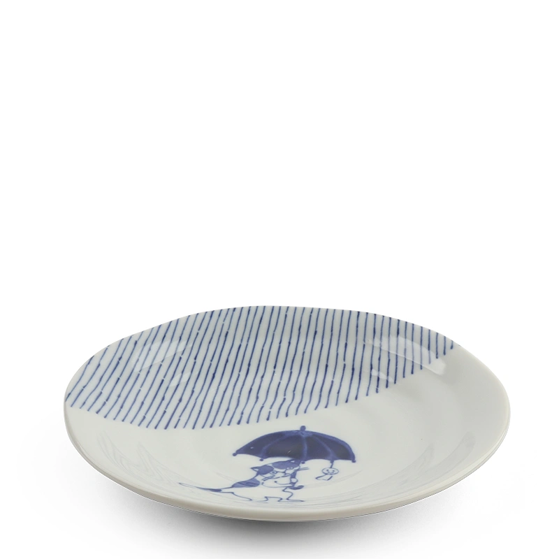 Plate Blue & White Cat Rainy Day 6.5"