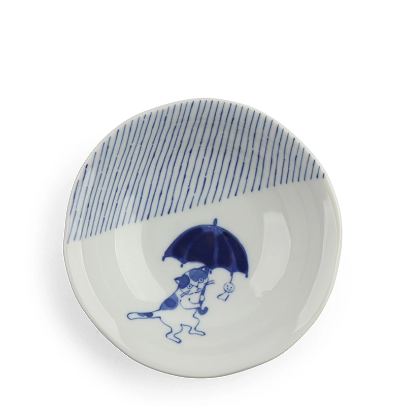 Bowl Blue & White Cat Rainy Day 5.25"