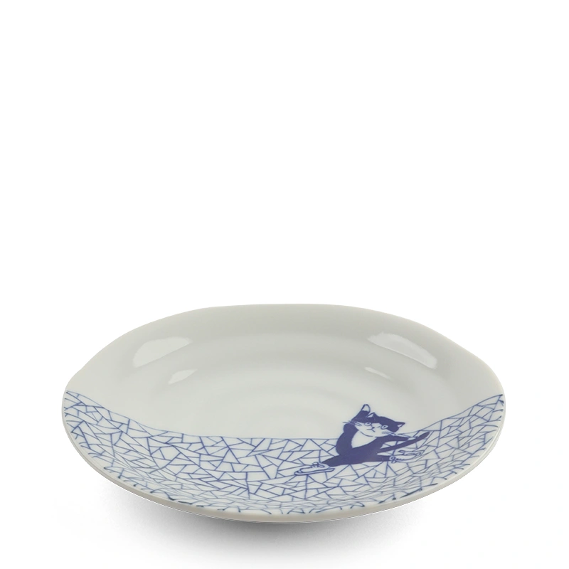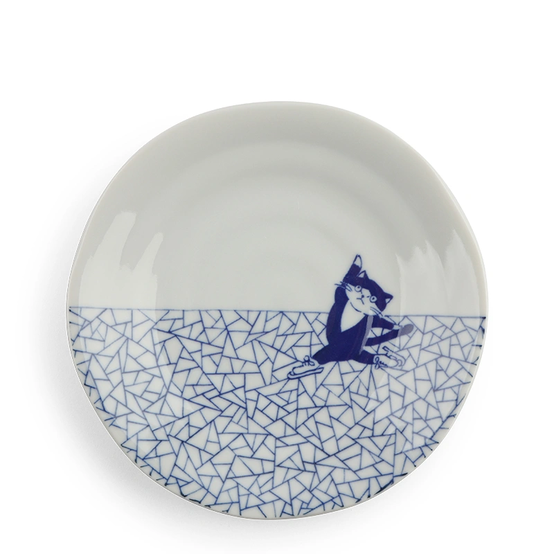 Plate Blue & White Cat Ice Skating 6.5"