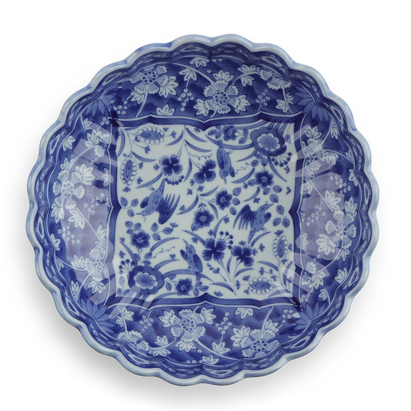 Blue and white serving bowl with multi-pattern design. Perfect for mixing and matching with your other blue and white pieces. Blue and white is the new neutral!