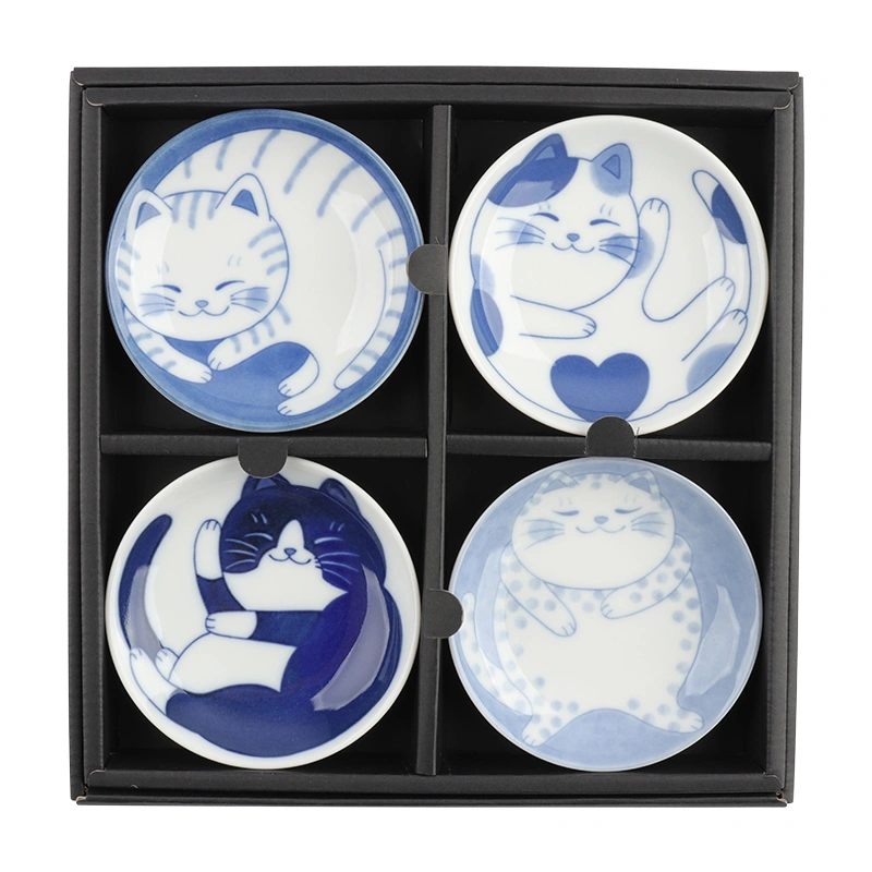 Blue & White Cat 3.75" Plate Set Gift Box